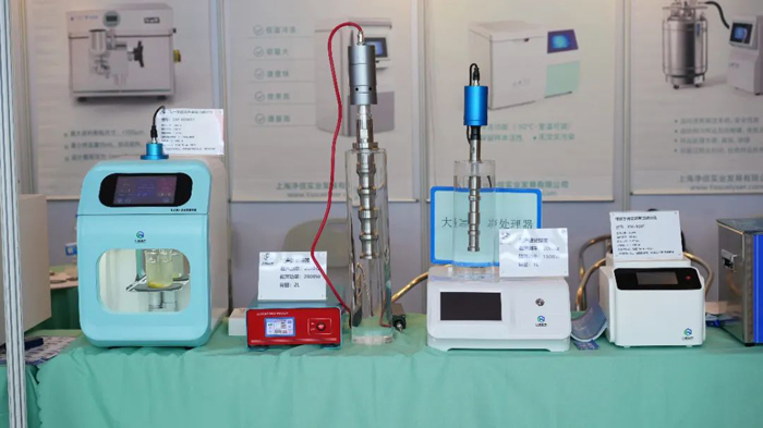 展會上,我司展示了多款產品:高壓均質機、三維電磁篩分儀、行星式球磨儀、冷凍研磨儀、超聲波破碎儀、大功率超聲處理器、非接觸超聲波二維材料分散儀等多款產品。