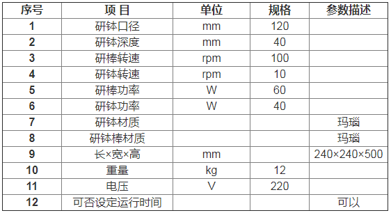 臼式研磨機性能特點:可快速,均一化的研磨, 對于任何正在進行的研磨過程可極其方便的加入樣品, 研缽及研磨槌不借助任何工具就可以拆卸和安裝,可準確調節并可讀出研磨槌的壓力,對粗造的樣品進行預粉碎,研磨臼研磨槌可拆卸容易清洗,種不同材質的研磨裝置可供選擇,1年的保修期。