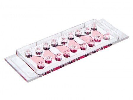 搭配微量分注器使用于兩側60 μL儲液槽中制造出化學物質的線性濃度梯度,此時嵌入在儲液槽中間觀察管道基質膠中的細胞即處于一穩定的線性濃度梯度培養環境中。