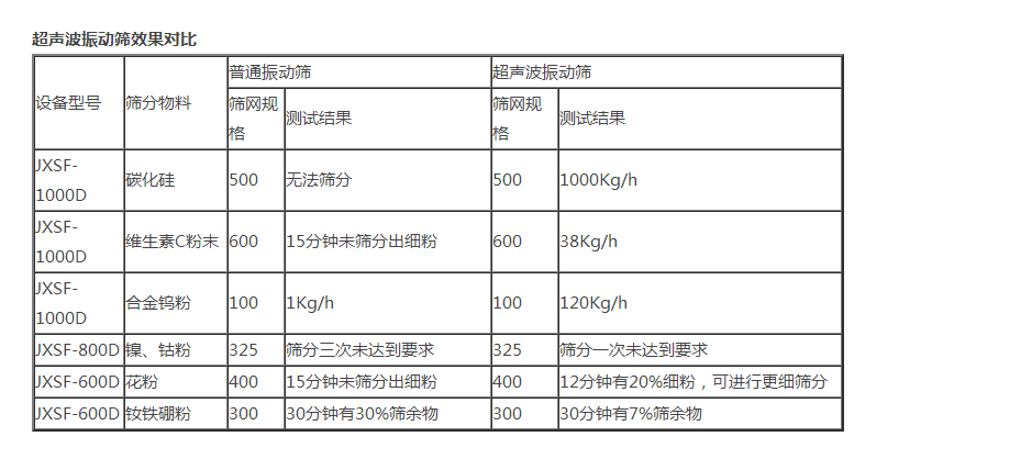 JXSF系列超聲波振動篩篩分精度可提高1-100%,產量可提高1-20倍;真正滿足600目以上工業化生產需要!